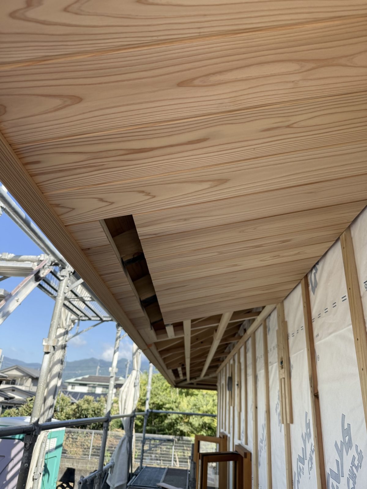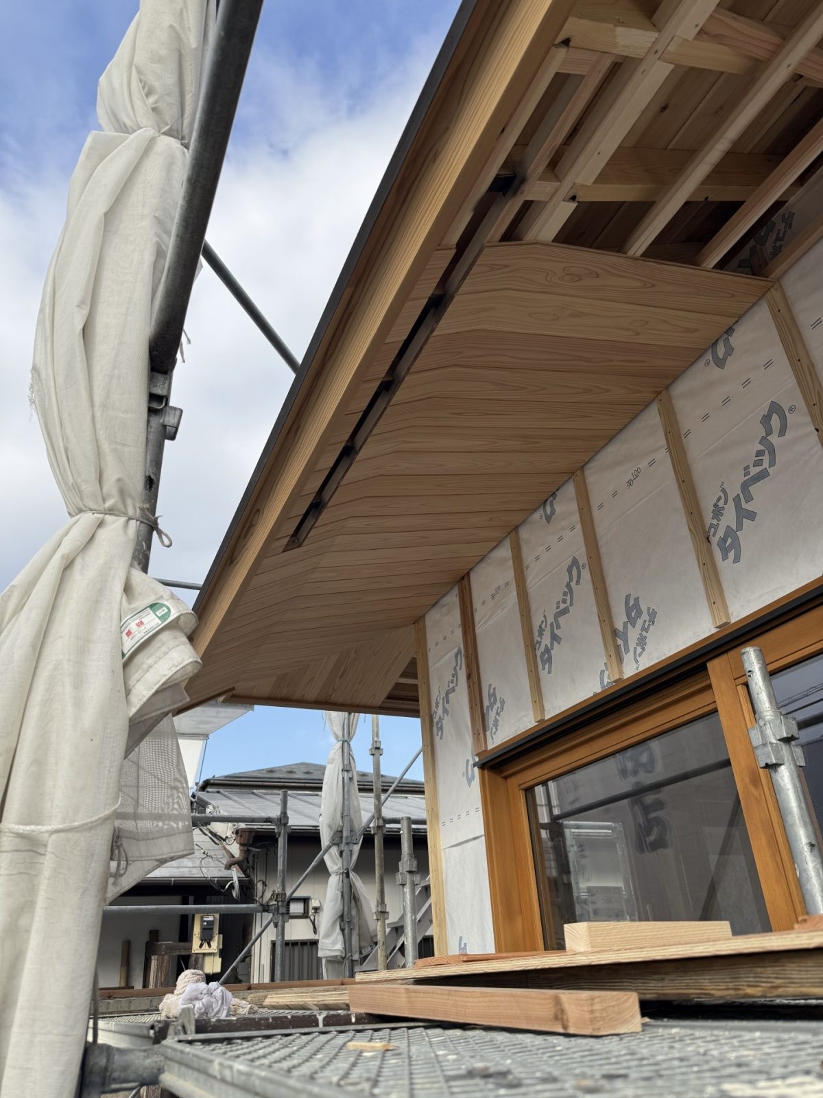 通気胴縁の上にモルタルの下地となる杉板を貼ります。