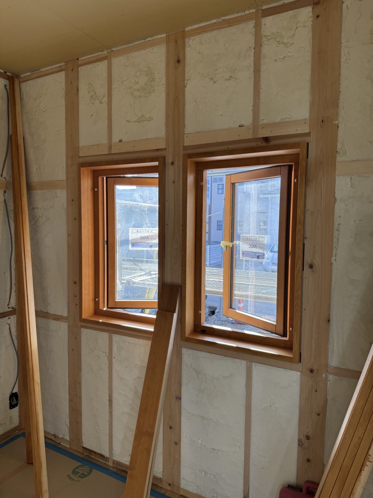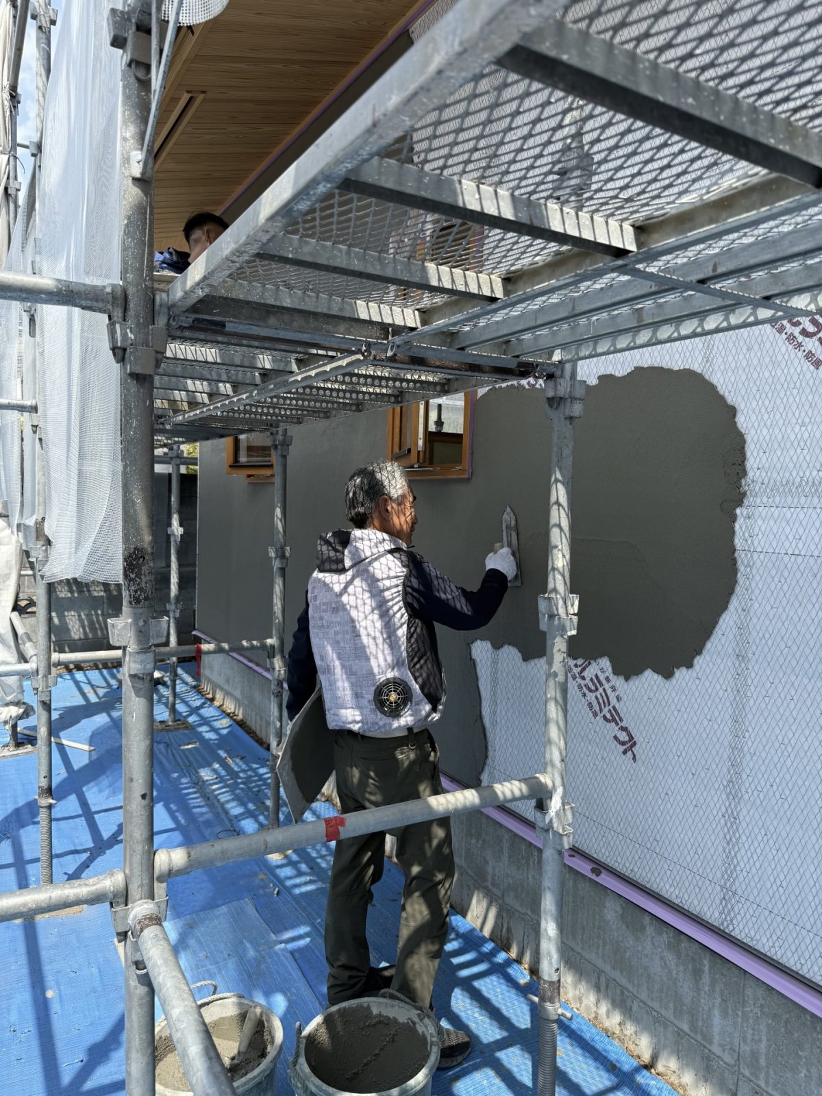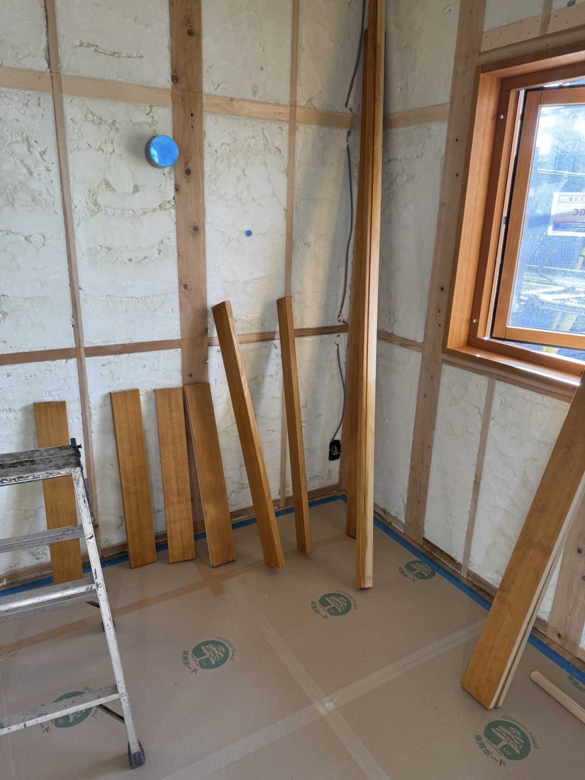 2025.11.20 新築事務所工事 その11 フローリングを貼り終わり 先日加工した窓枠を取り付けます。 木製サッシと同じ塗料で仕上げているので 一体感があります。 外部は、左官屋さんが下地となるモルタルを塗っています。 モルタルを塗り終わりました。 雰囲気が出て来ました^_^ SNSでもご購読できます。