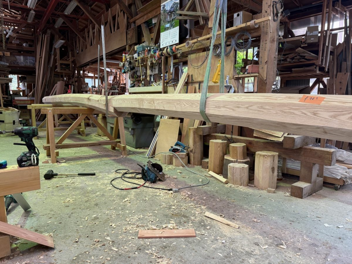 栗の梁も塗装しました。